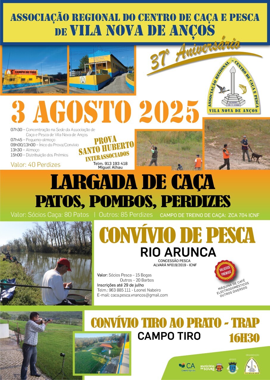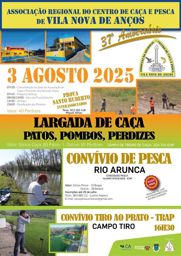 A Associação Regional do centro de Caça e Pesca, de Vila Nova de Anços, celebra o seu 37º Aniversário, com várias atividades desportivas direcionadas aos seus associados.