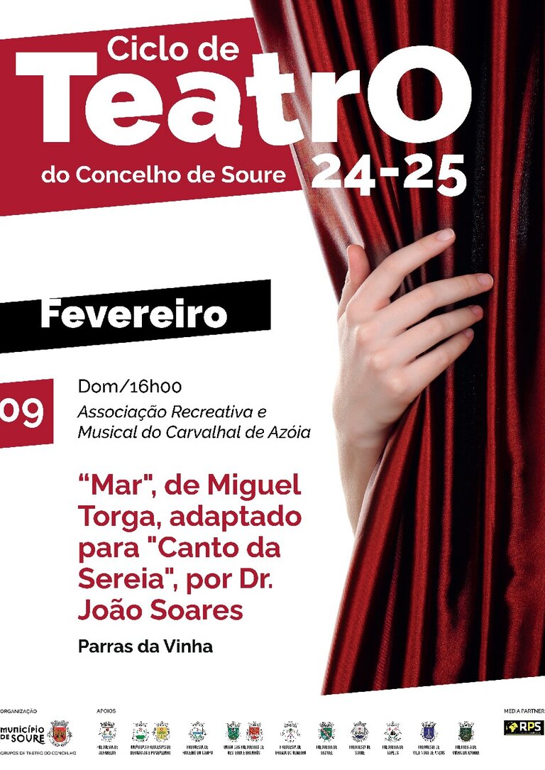 No dia 9 de fevereiro, domingo, pelas 16h00 na Associação Recreativa e Musical do Carvalhal de Azoia, o Grupo Parras da Vinha, apresenta o espetáculo "Mar", de Miguel Torga, adaptado para "Canto da Sereia", por Dr. João Soares.