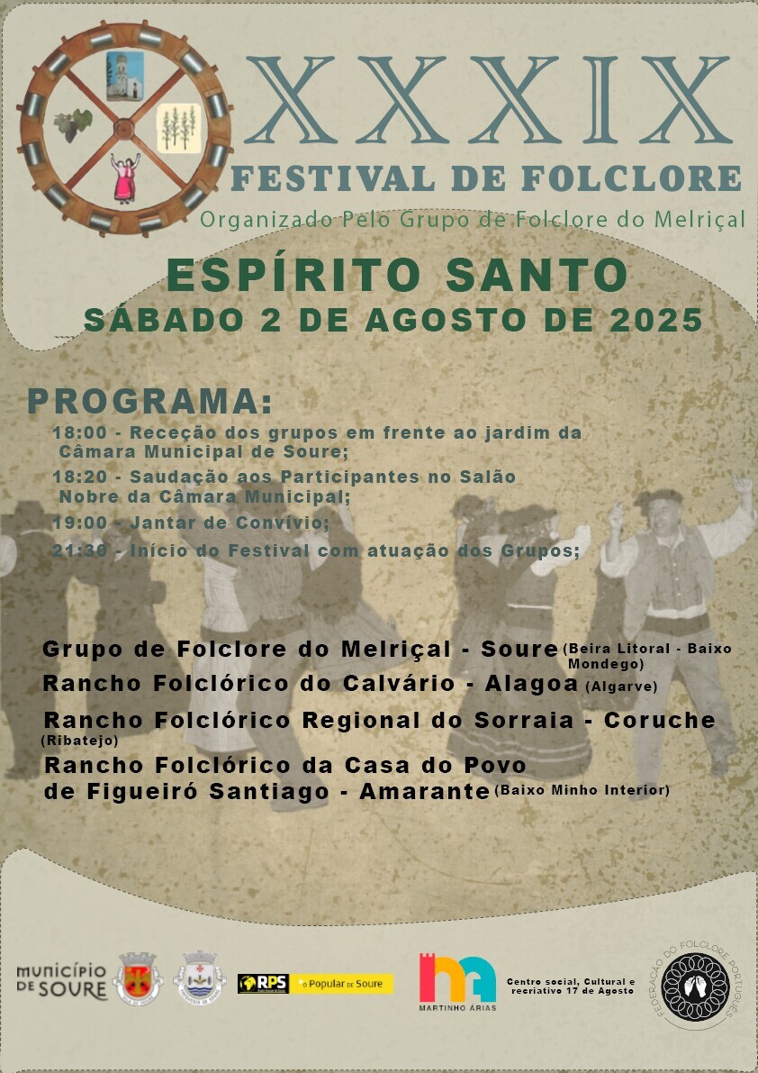 O Grupo de Folclore do Melriçal vai realizar o XXXIX Festival de Folclore, no lugar de Espírito Santo.