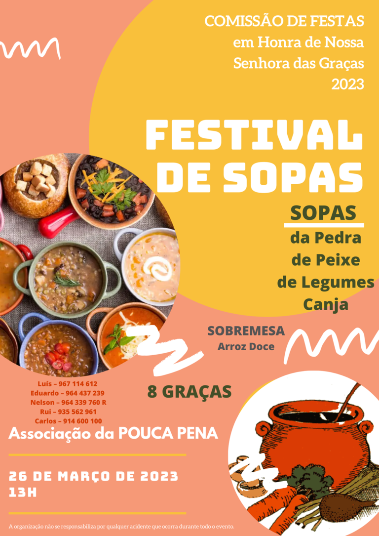 Com o intuito de angariar fundos para a realização das Festas em Honra de Nossa Senhora das Graças, a Comissão de Festas promove o já tradicional Festival de Sopas.
