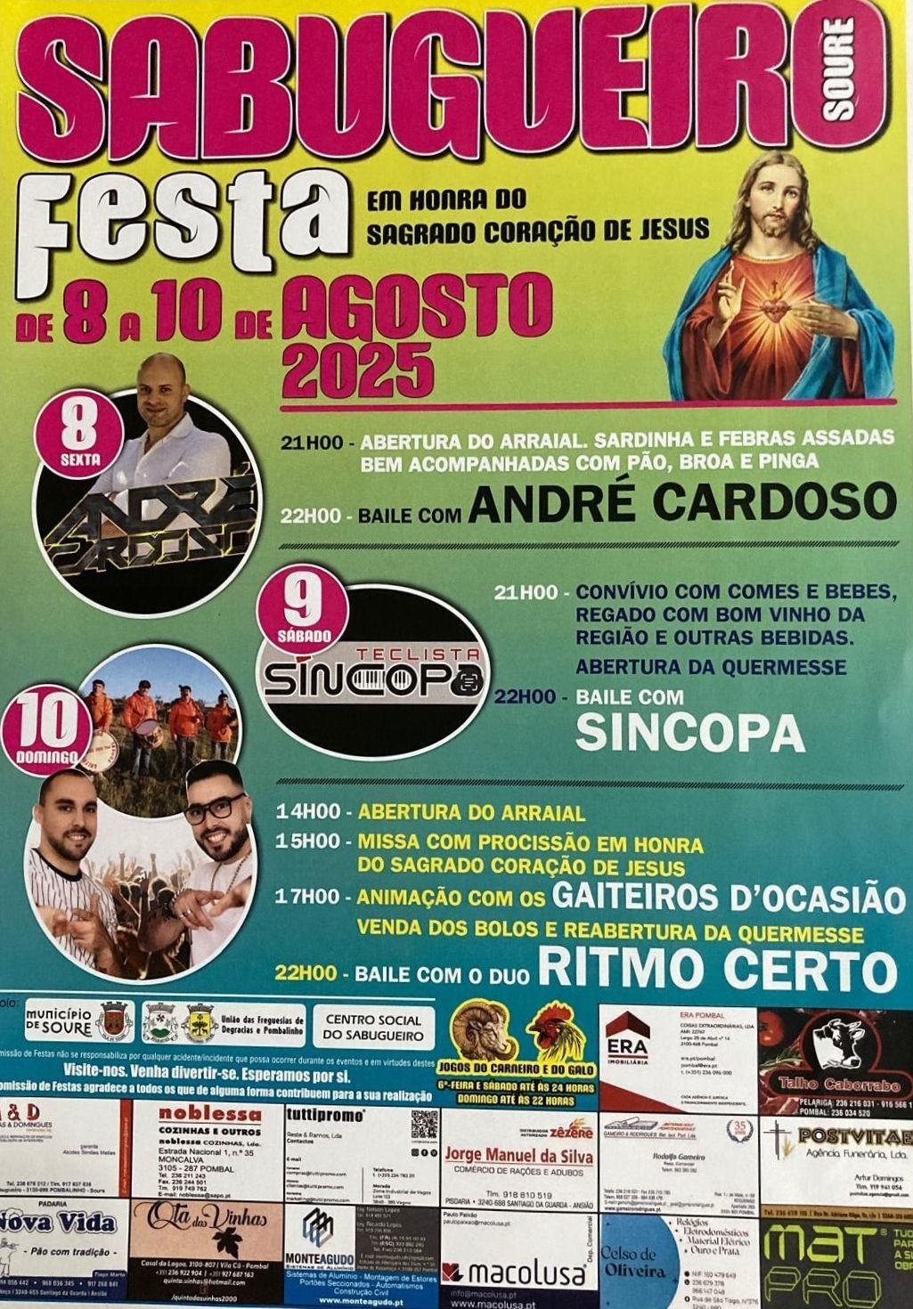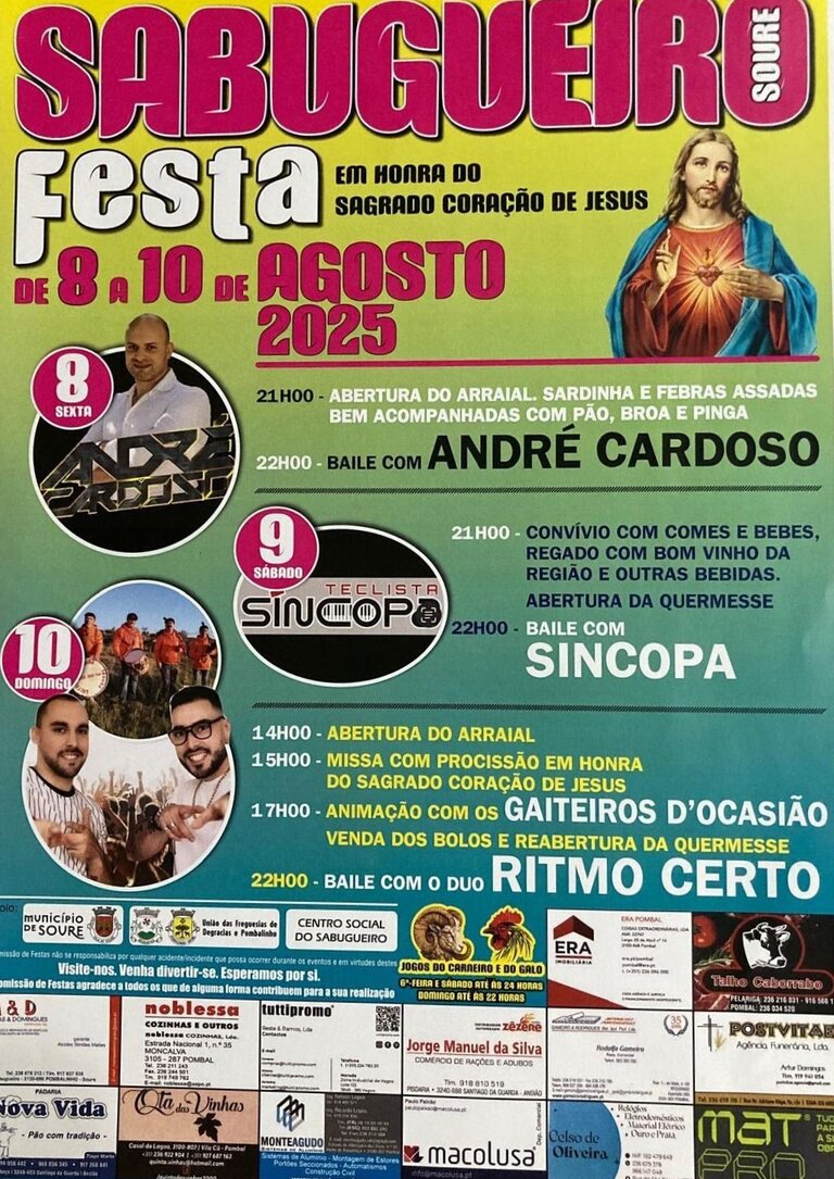 Festa em Honra do Sagrado Coração de Jesus, organizada pela Comissão de Festas de Sabugueiro - Pombalinho