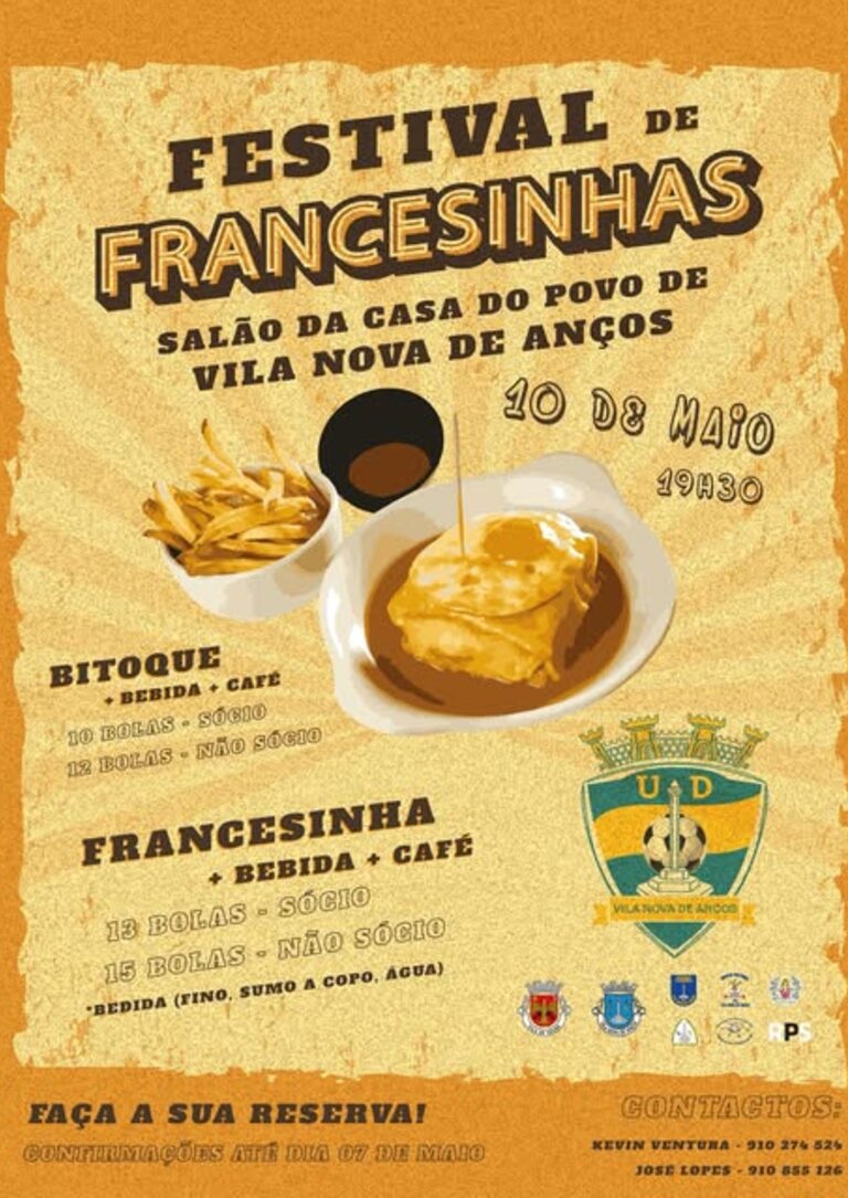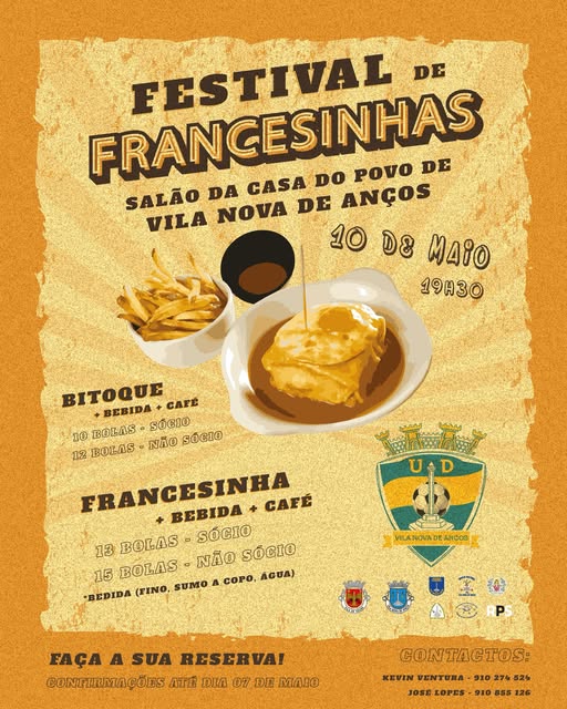 O grupo União Desportiva Vilanovense, promove um festival de francesinhas, no Salão da Casa do Povo de Vila Nova de Anços.