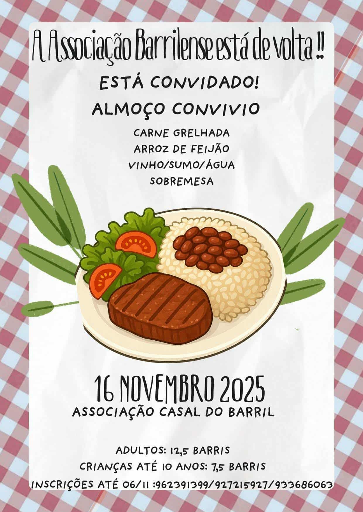 A Associação Barrilense está de volta e convida todos a participar num agradável almoço de convívio!