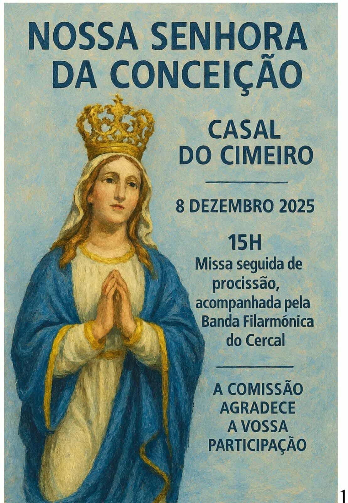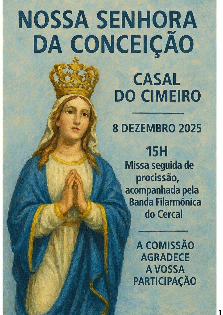 A partir das 15h00, terá lugar a missa seguida de procissão, acompanhada pela Banda Filarmónica do Cercal, mantendo viva uma tradição profundamente enraizada na comunidade.