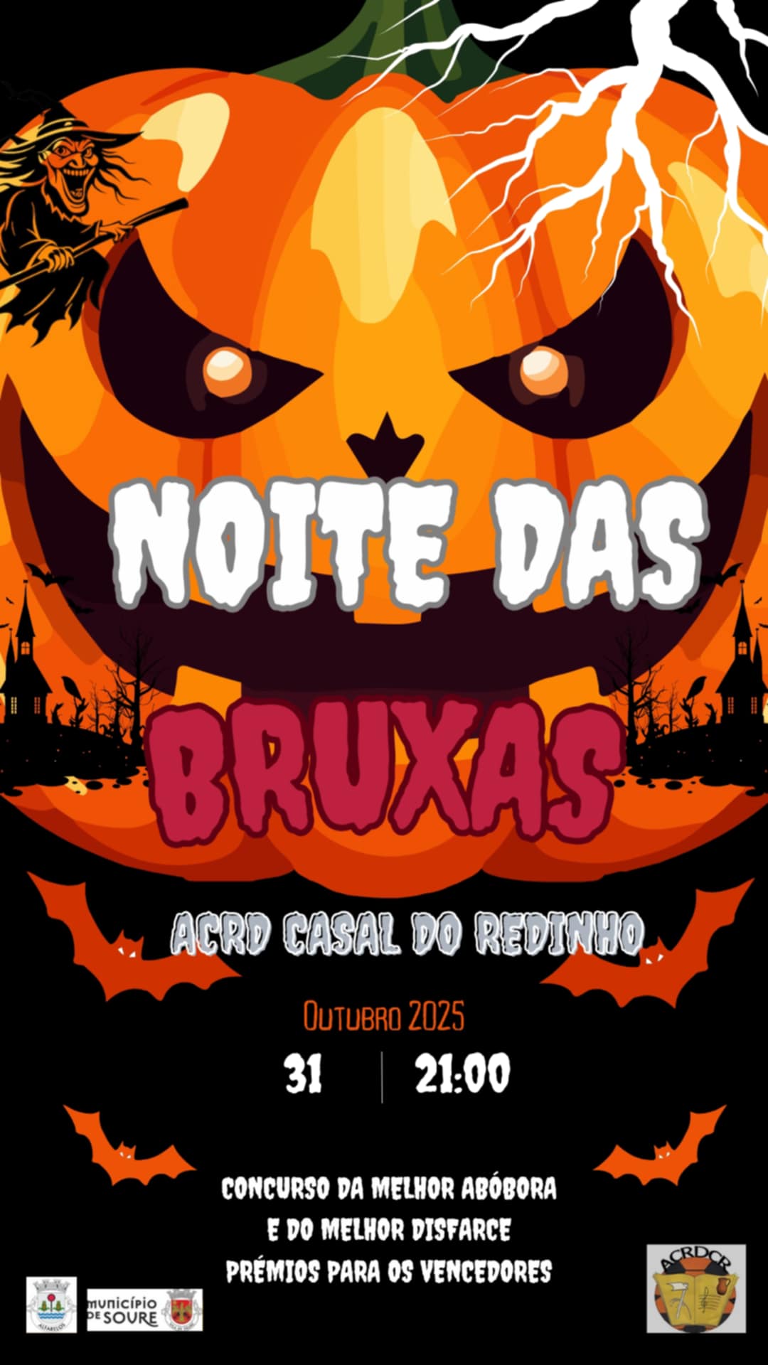 A ACRD Casal do Redinho convida todos a participar na tradicional Noite das Bruxas, que se realiza no dia 31 de outubro, a partir das 21h00.