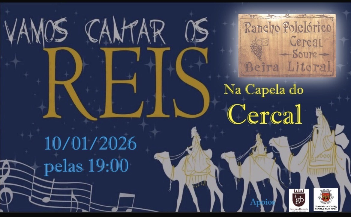 O Rancho Folclórico do Cercal – promove, no próximo dia 10 de janeiro de 2026, a iniciativa “Vamos Cantar os Reis”, a realizar na Capela do Cercal, pelas 19h00.