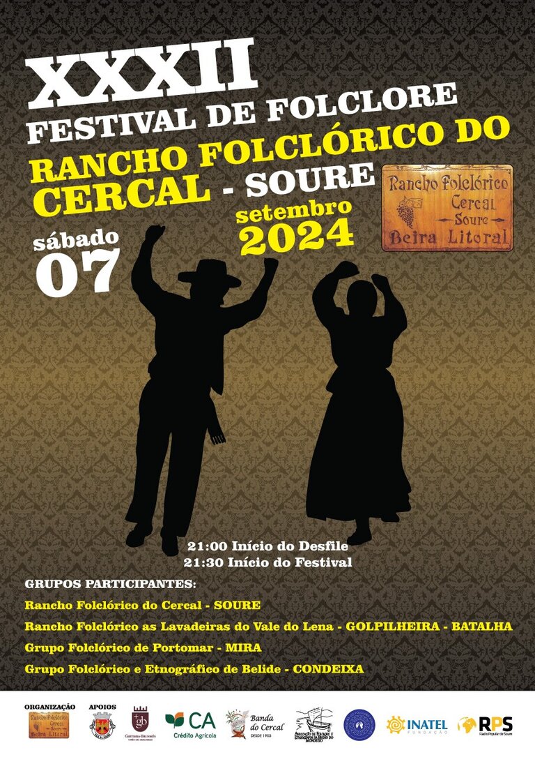 No próximo dia 7 de Setembro realiza-se, no recinto da antiga escola primária do Cercal, o XXXII Festival de Folclore organizado pelo Rancho Folclórico do Cercal. Após um desfile pelas ruas do Cercal, as atuações dos grupos iniciam-se por volta das 21h30, participando o rancho anfitrião, o Rancho Folclórico "As Lavadeiras do Vale do Lena" (Batalha), o Grupo Folclórico de Portomar (Mira) e o Grupo Folclórico e Etnográfico de Belide (Condeixa).