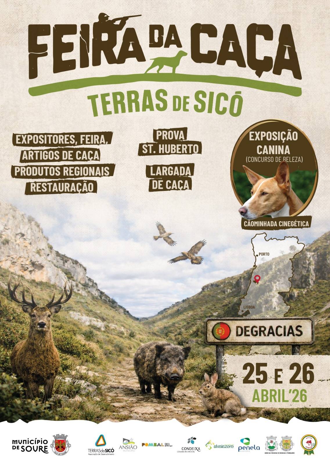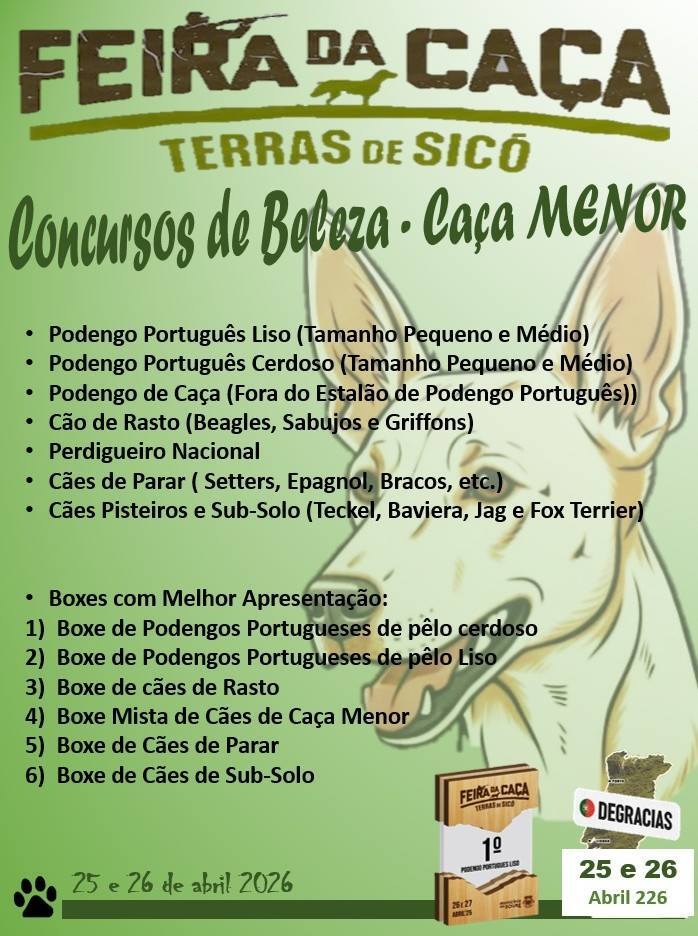 A freguesia de Degracias, no concelho de Soure, recebe nos dias 25 e 26 de abril de 2026 mais uma edição da Feira da Caça – Terras de Sicó, iniciativa que continua a afirmar-se como um importante momento de promoção do mundo rural e das tradições cinegéticas da região.