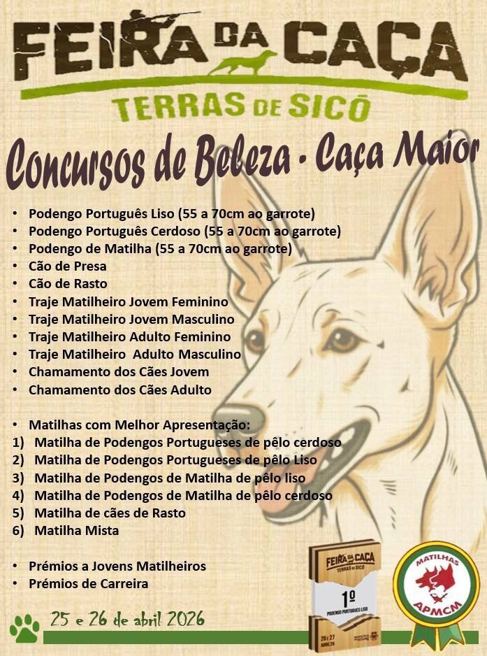 Paralelamente, os visitantes poderão usufruir de uma área dedicada a expositores, artigos de caça, produtos regionais e restauração, bem como de momentos de animação cultural e musical, valorizando os sabores e saberes tradicionais das Terras de Sicó.