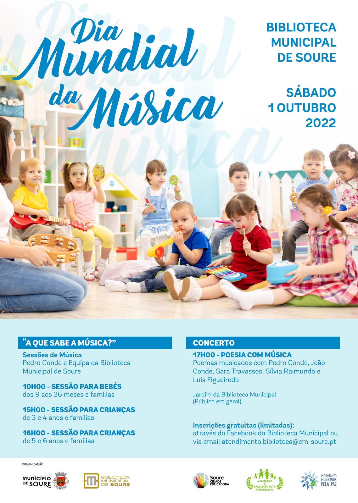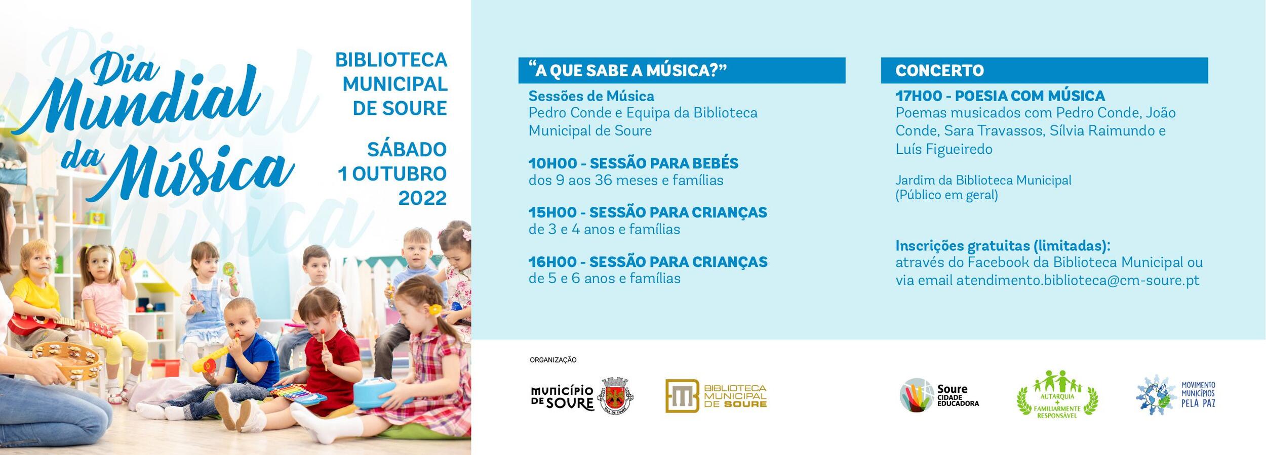 Acesso gratuito, com inscrições (limitadas) através do Facebook da Biblioteca Municipal em: https://www.facebook.com/bibliotecamunicipalsoure ou via email para: biblioteca@cm-soure.pt