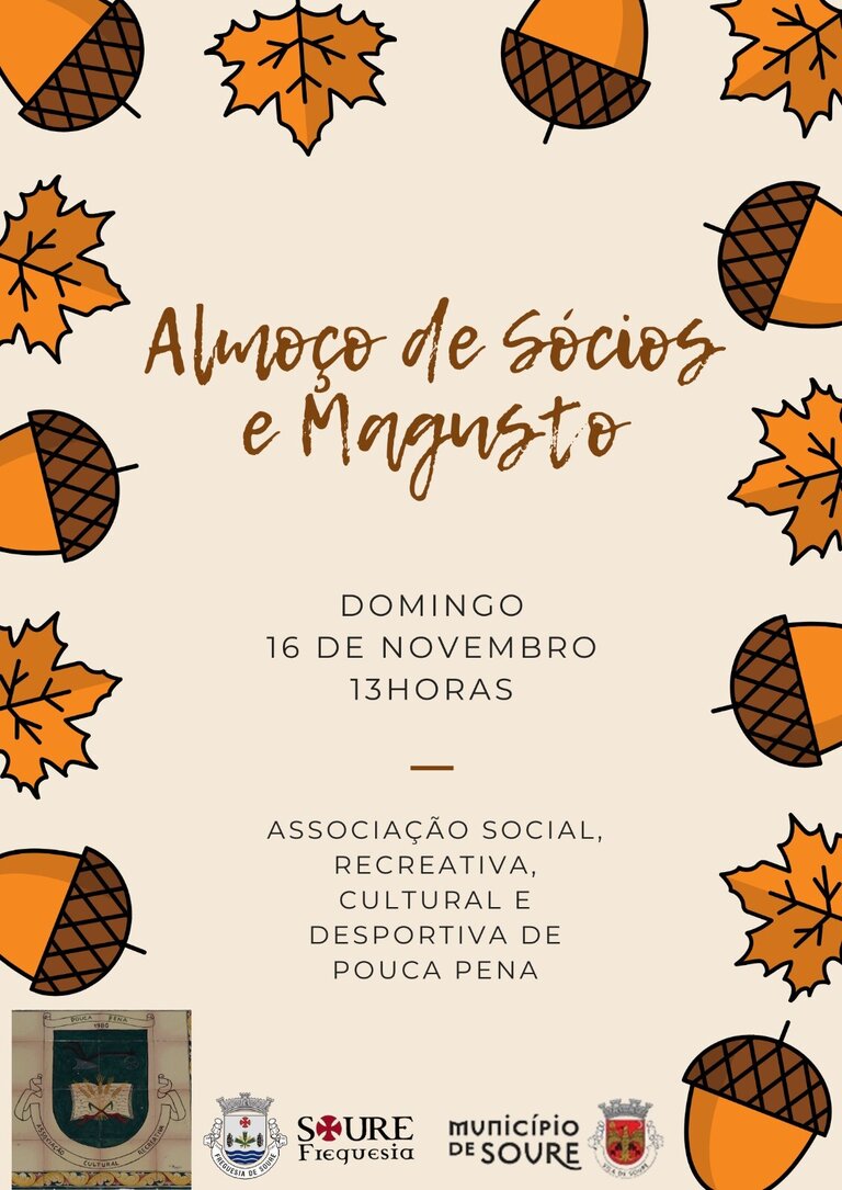 A Associação Social, Recreativa, Cultural e Desportiva de Pouca Pena celebra o seu Dia do Sócio no próximo 16 de novembro, com um almoço convívio e o tradiçional magusto.
