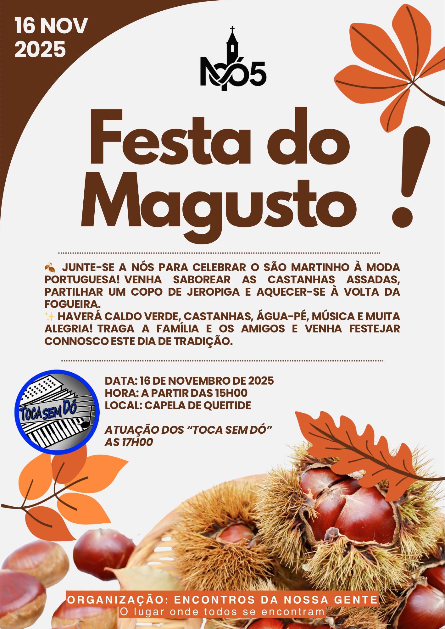 A associação Encontros da Nossa Gente, convida toda a comunidade a celebrar o São Martinho à moda portuguesa!