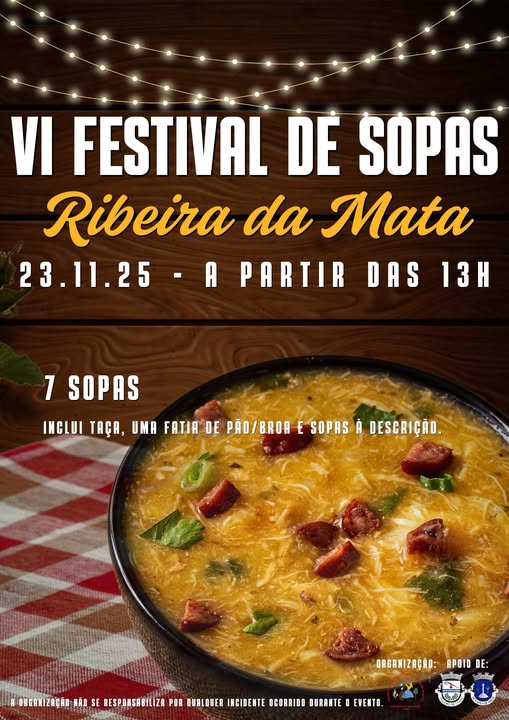 A Ribeira da Mata volta a acolher o VI Festival de Sopas, no dia 23 de novembro, a partir das 13h00.