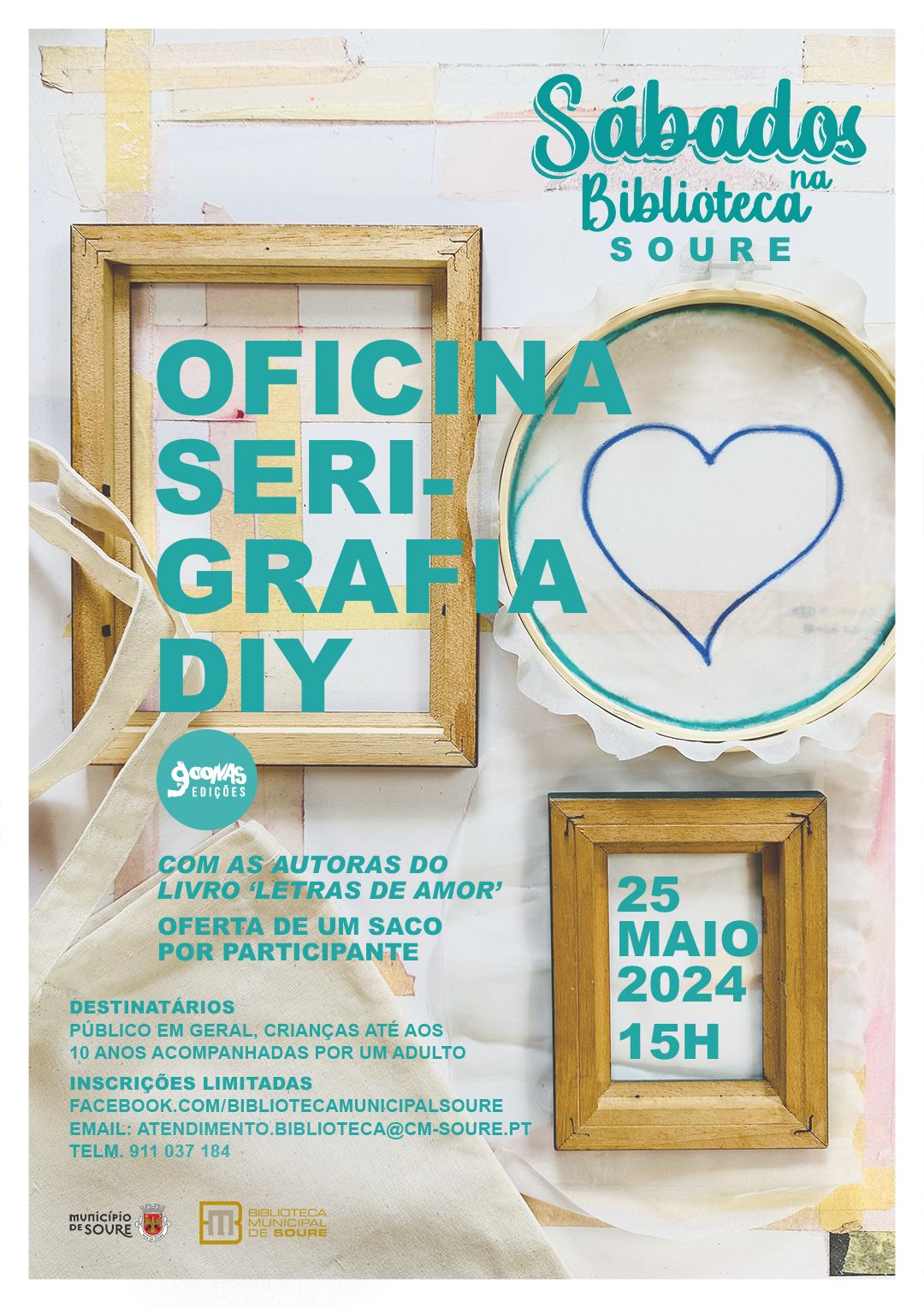 Inscrições limitadas, através do Facebook da Biblioteca Municipal em: https://www.facebook.com/bibliotecamunicipalsoure ou via email para:atendimento.biblioteca@cm-soure.pt