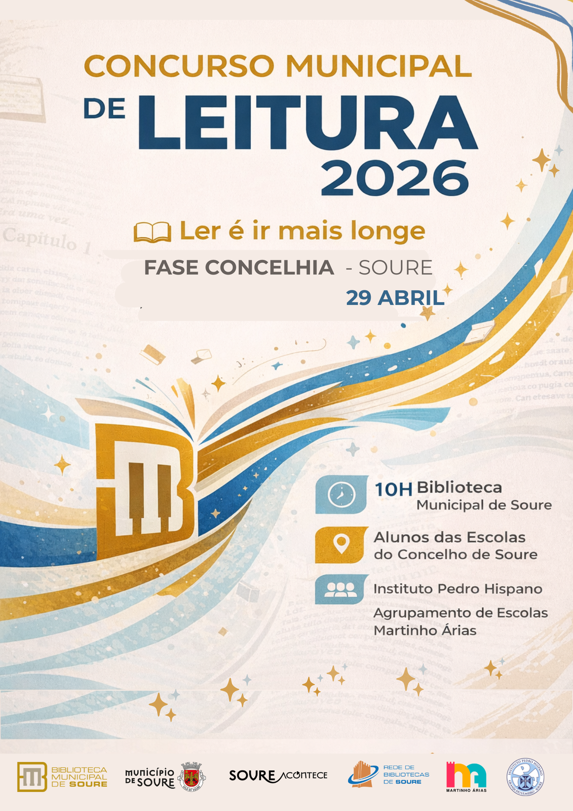 A Biblioteca Municipal de Soure recebe, no próximo dia 29 de abril de 2026, a fase concelhia do Concurso Municipal de Leitura 2026, uma iniciativa que promove o gosto pela leitura junto dos mais jovens, sob o lema “Ler é ir mais longe”.