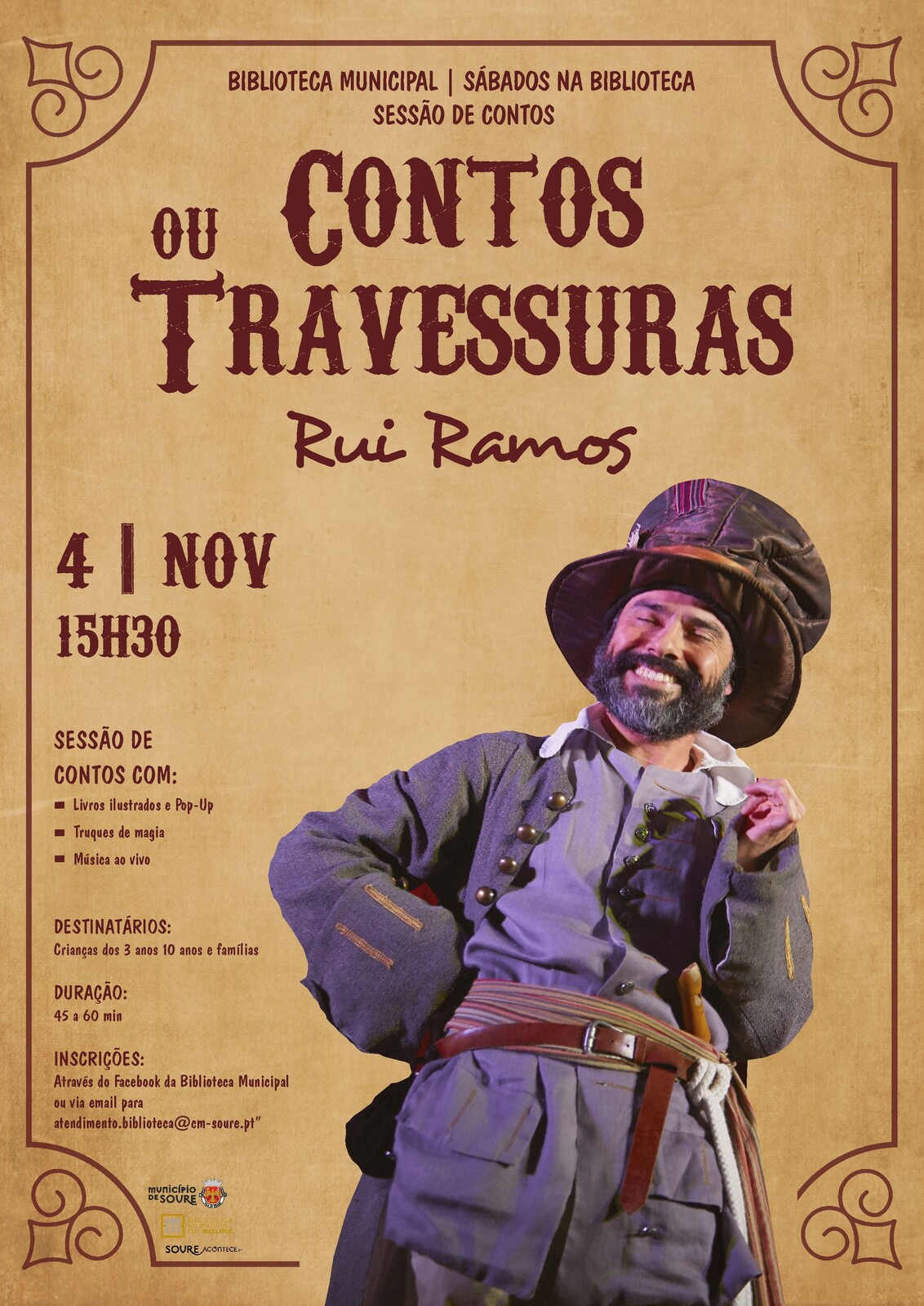 Acesso gratuito, com inscrições (limitadas) através do Facebook da Biblioteca Municipal de Soure ou via email para: atendimento.biblioteca@cm-soure.pt