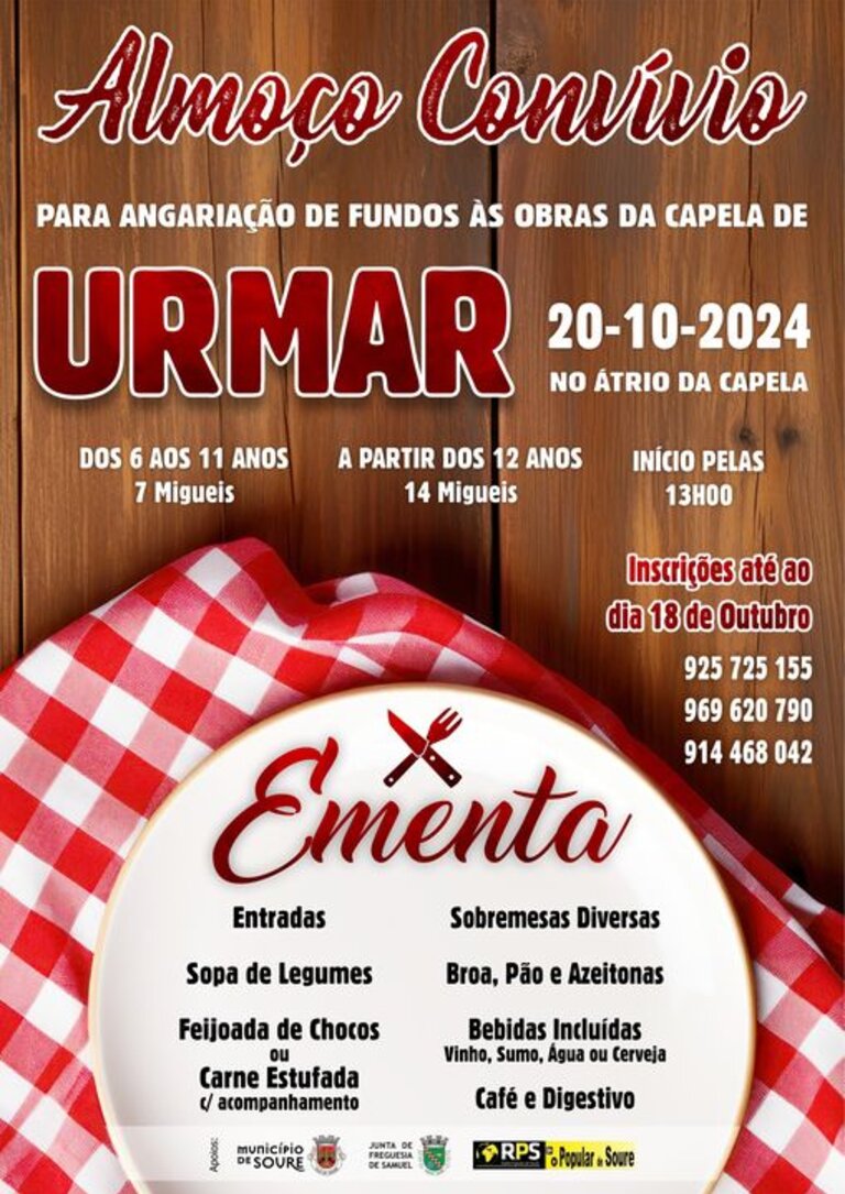 Almoço-convívio com o objetivo de angariar fundos para as obras da Capela de São Miguel, padroeiro de Urmar.
