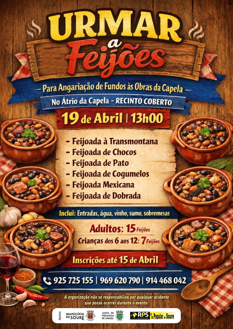 A freguesia de Samuel prepara-se para receber, no próximo dia 19 de abril, pelas 13h00, mais uma edição do evento “Urmar a Feijões”, que terá lugar no átrio da capela, em recinto coberto.