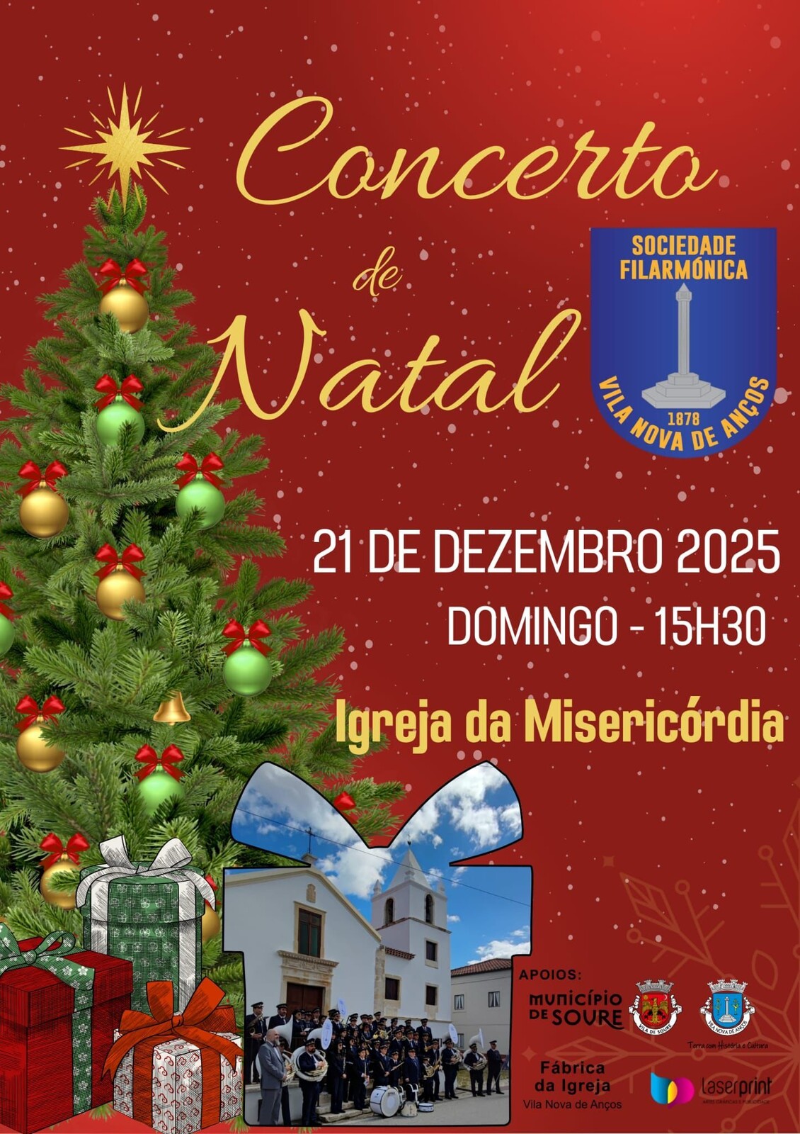 A Sociedade Filarmónica de Vila Nova de Anços promove o seu tradicional Concerto de Natal, no próximo domingo, 21 de dezembro de 2025, pelas 15h30, na Igreja da Misericórdia.