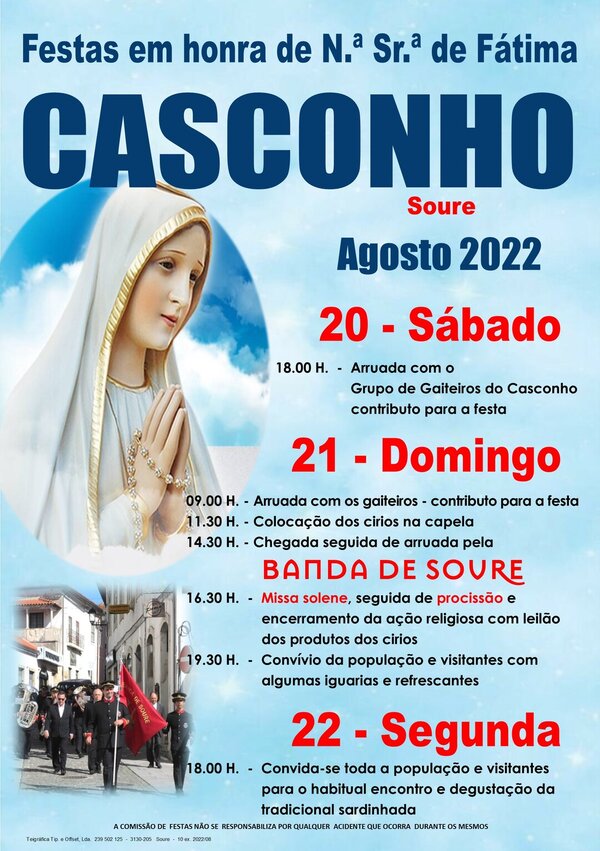20 a 22 AgoFestas em Honra de Nossa Senhora de Fátima