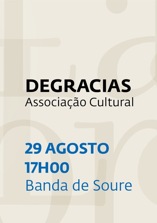 • 29 de agosto | Domingo• BANDA DE SOURE• Horário| 17h00m• Local | Degracias - Associação C.D.S da Freguesia de Degracias• União de Freguesias de ... -
