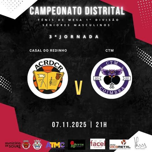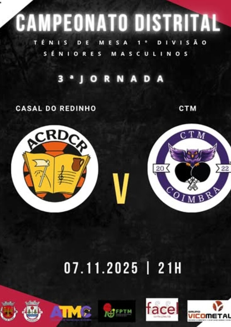 A equipa da ACRDC Redinho recebe o CTM Coimbra num novo desafio do Campeonato Distrital.