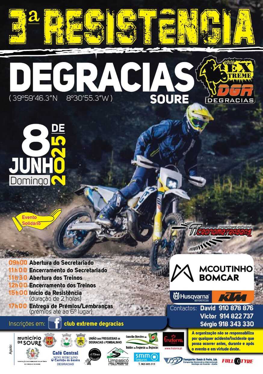 Degracias, na zona serrana do concelho de Soure acolhe, no dia 8 de junho, mais um grande evento, festa vez, dedicado ao desporto motorizado de duas rodas.