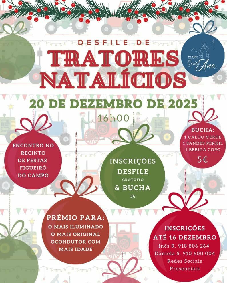 No próximo dia 20 de dezembro de 2025, pelas 16h00, realiza-se o Desfile de Tratores Natalícios,em Figueiró do Campo.