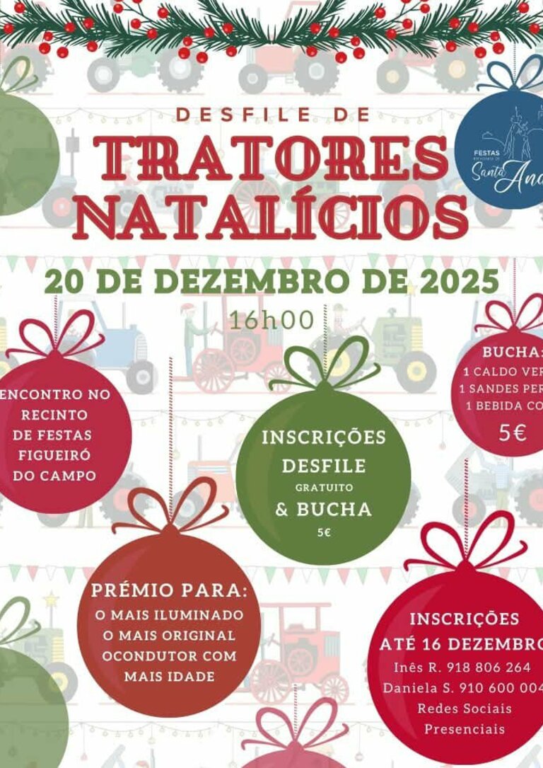 O encontro terá lugar no Recinto de Festas de Figueiró do Campo, reunindo tratores decorados a rigor para celebrar a tradição natalícia e o mundo rural.