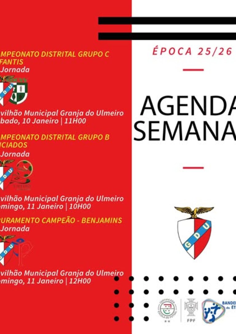 O GDU entra em campo este fim de semana com três jornadas dos Campeonatos Distritais, nos escalões de Infantis, Iniciados e Benjamins.