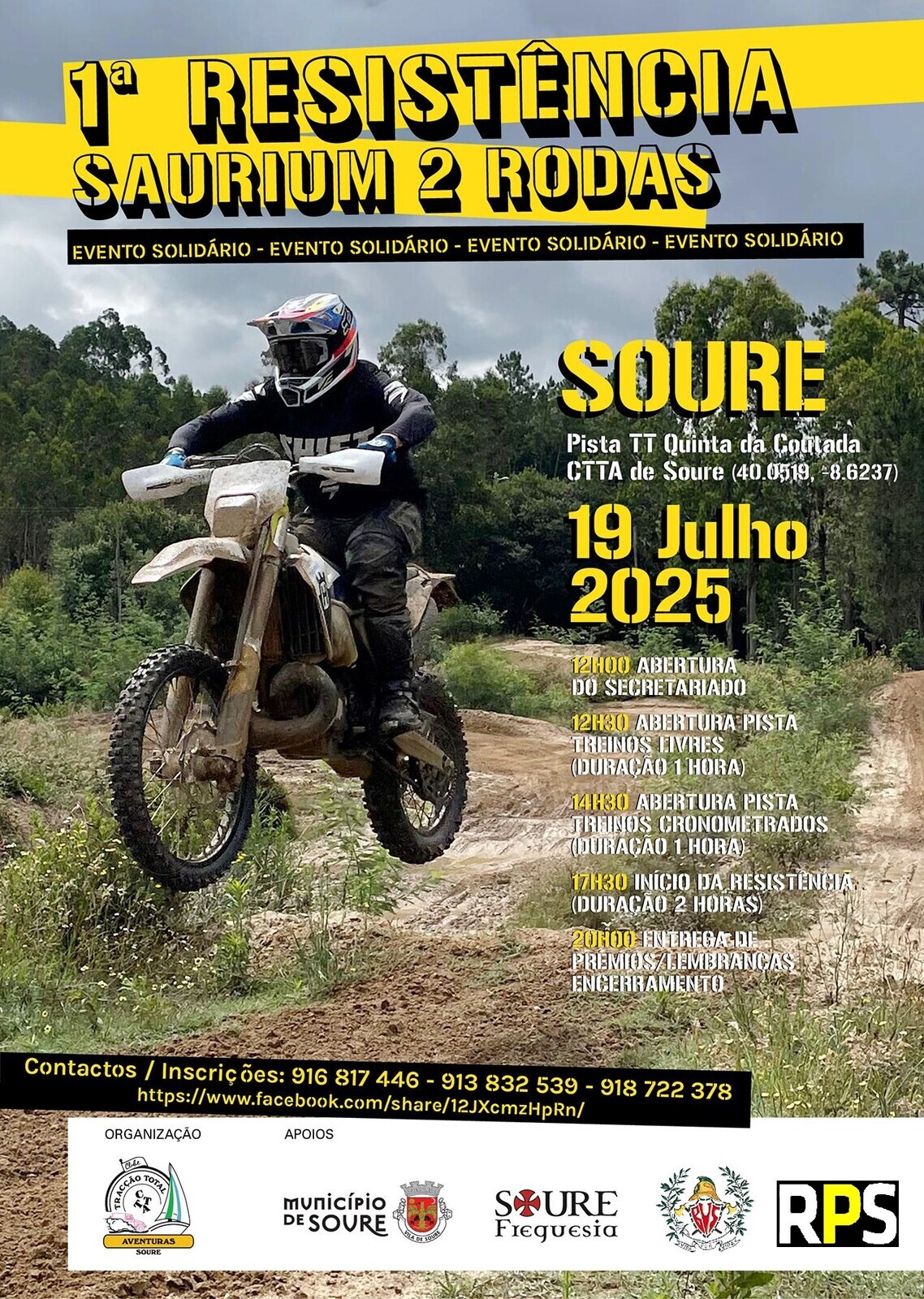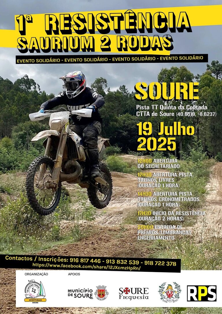 Trata-se 1ª Resistência Saurium 2 Rodas que decorrerá, na pista TT na Quinta da Coutada (nas proximidades do cemitério de Soure).