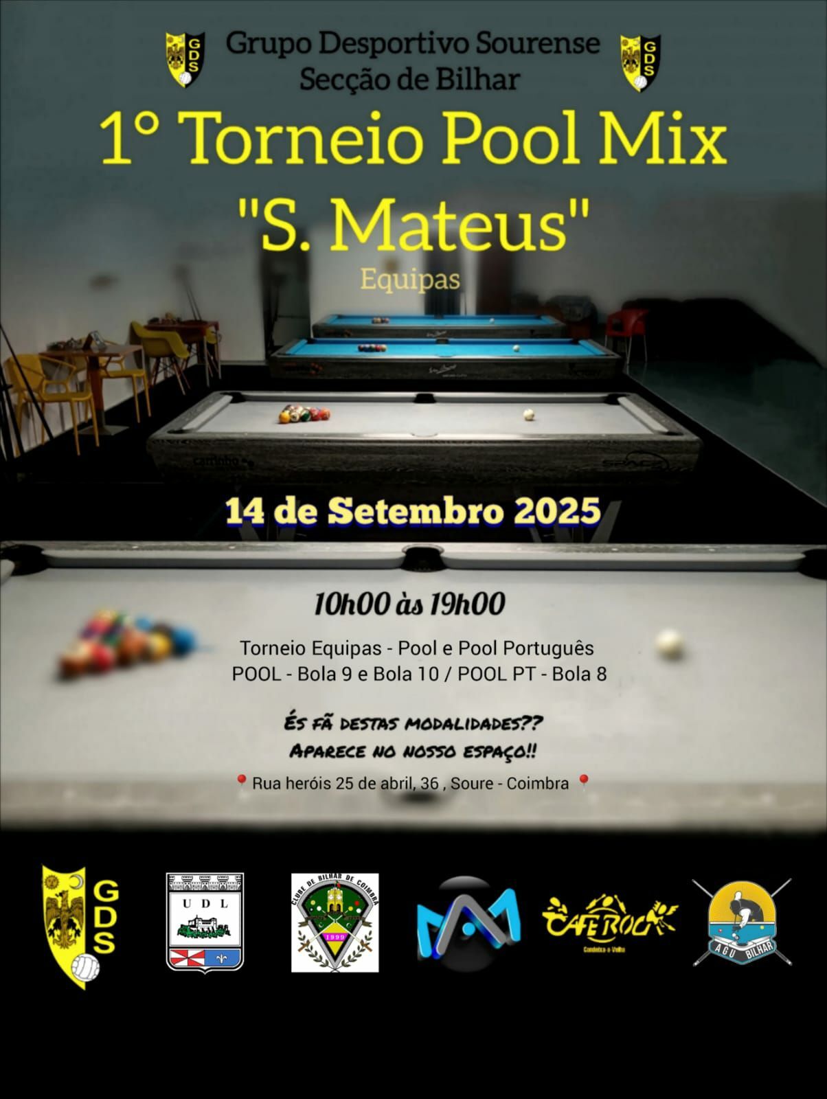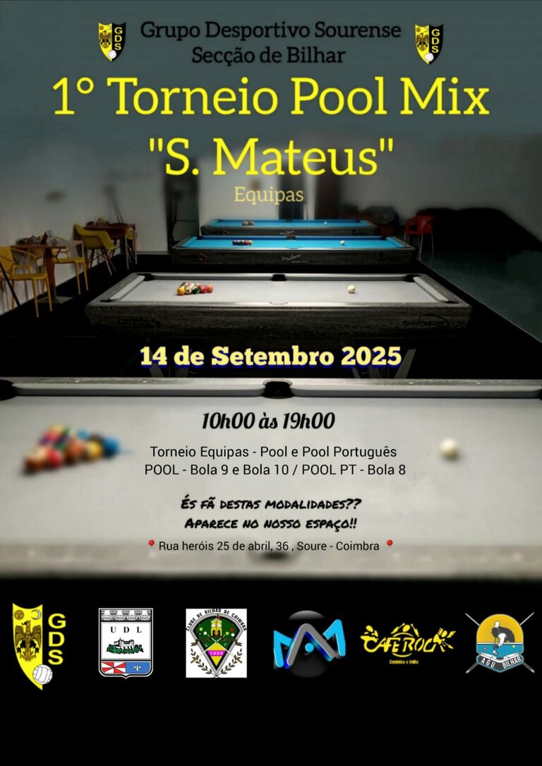 - Dia 14 de setembro, realiza-se na nossa Secção o Torneio Pool Mix de São Mateus