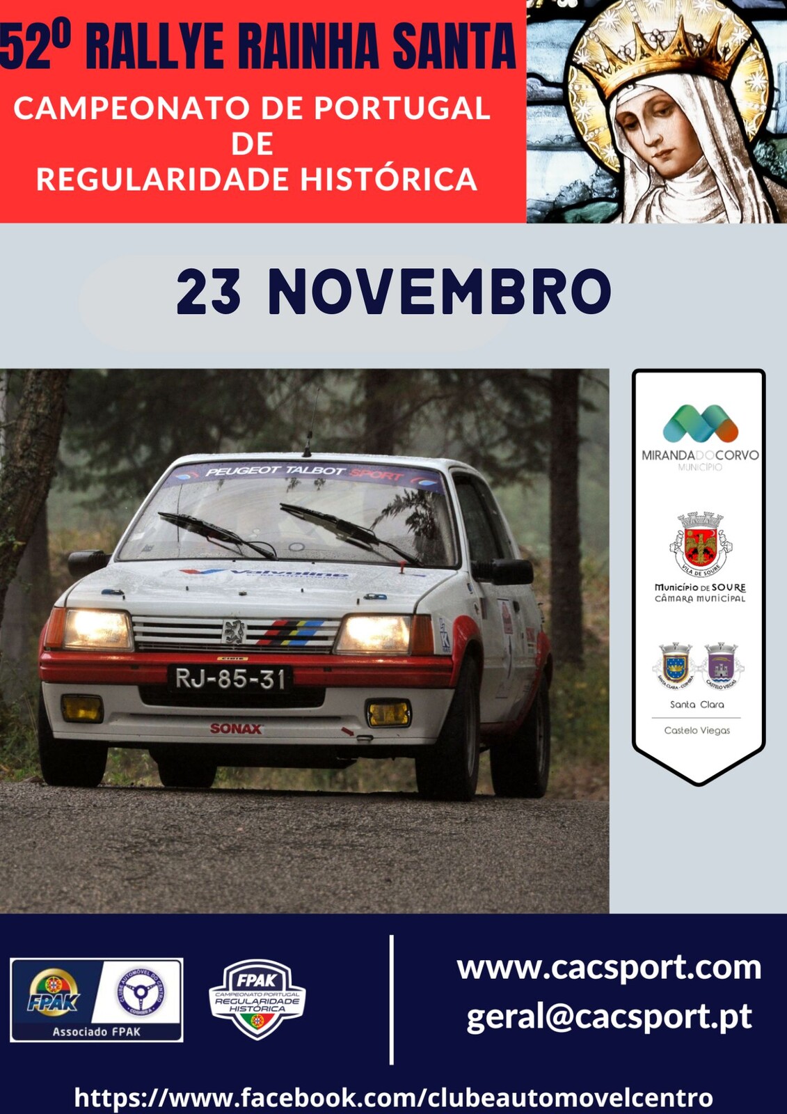 Soure, recebe no dia 23 de novembro, sábado, o 52º Rallye Rainha Santa - Campeonato de Portugal de Regularidade Histórica..
