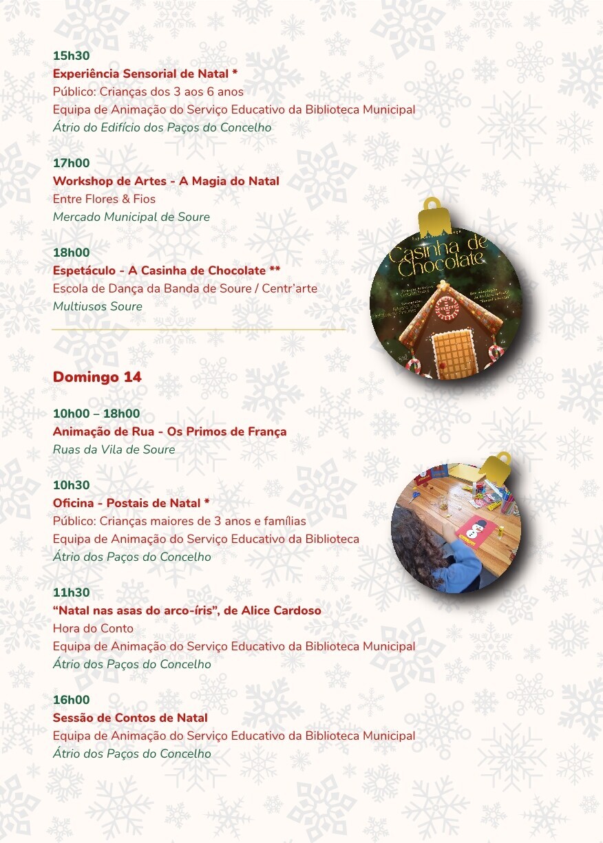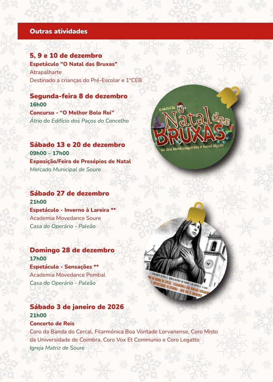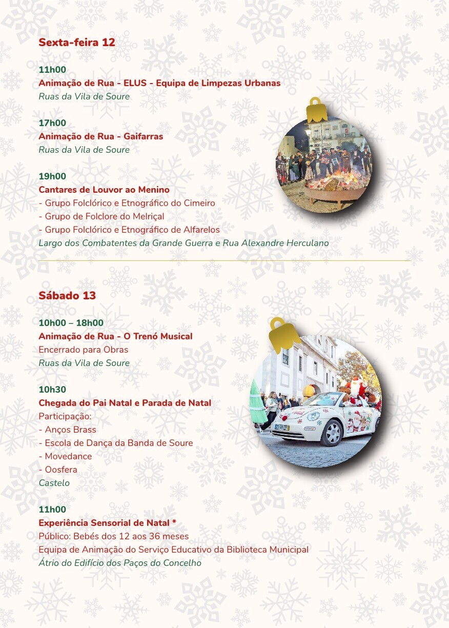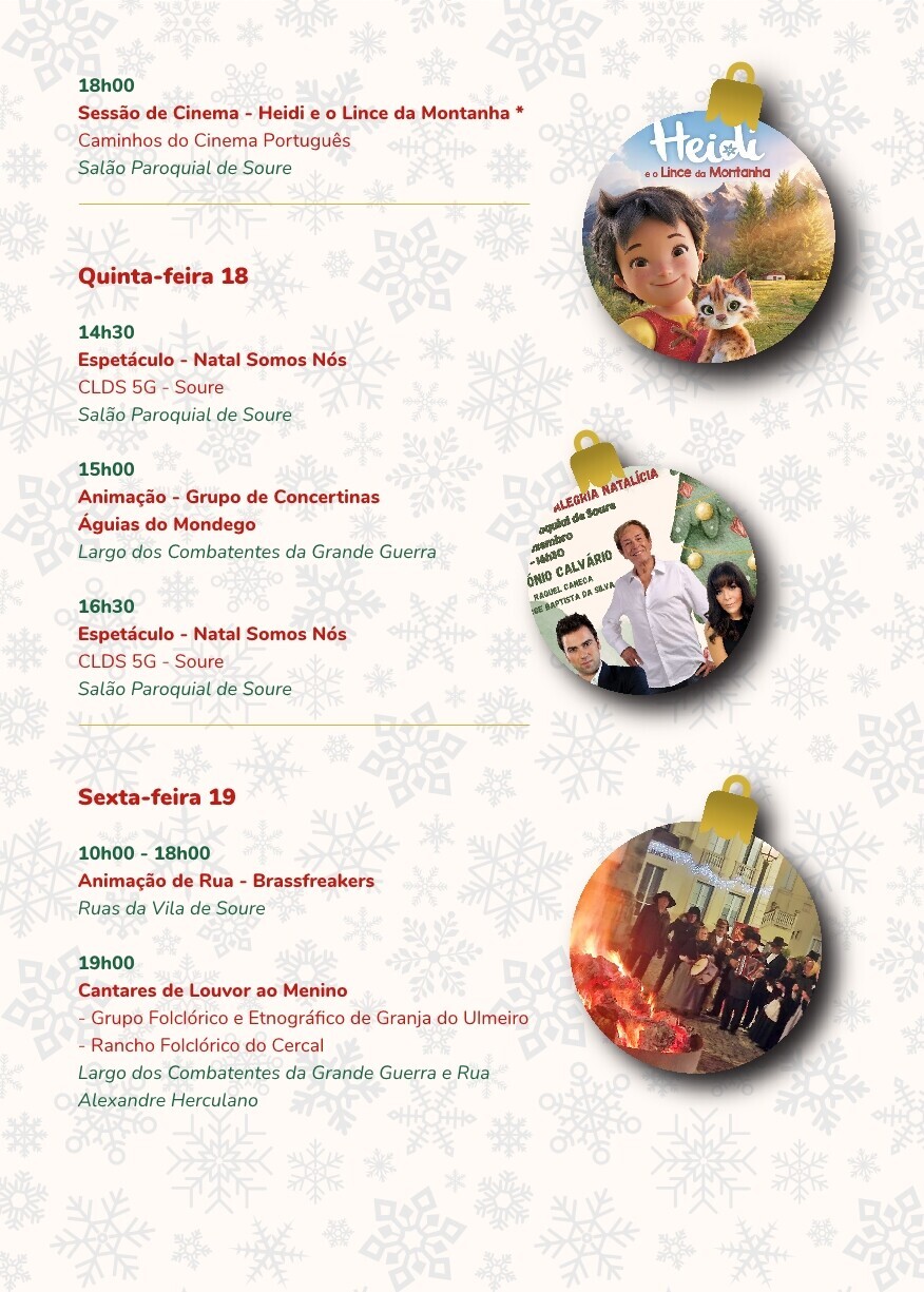 Um convite à partilha, ao convívio e ao espírito familiar que caracteriza esta época, valorizando tradições e reforçando o encanto do Natal em Soure.