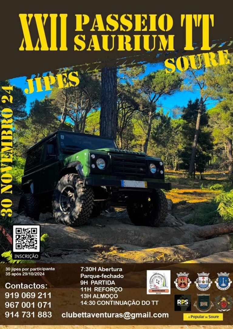 Está a chegar o XXII SAURIUM TT 4X4, um passeio todo terreno turístico de dificuldade baixa que permite trazer a família e desfrutar um dia inteiro a andar de jipe pelas terras de Soure.