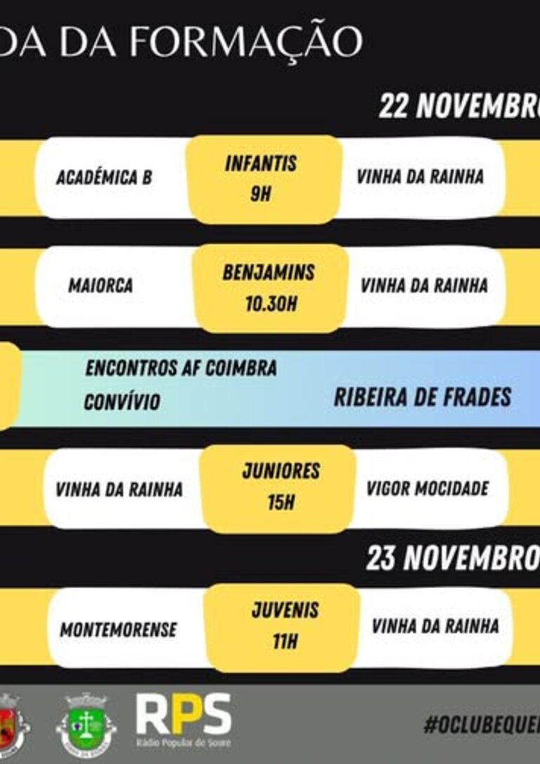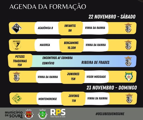 As equipas jovens do concelho entram em campo este fim de semana, com jogos em Vinha da Rainha e participações nos Encontros AF Coimbra.