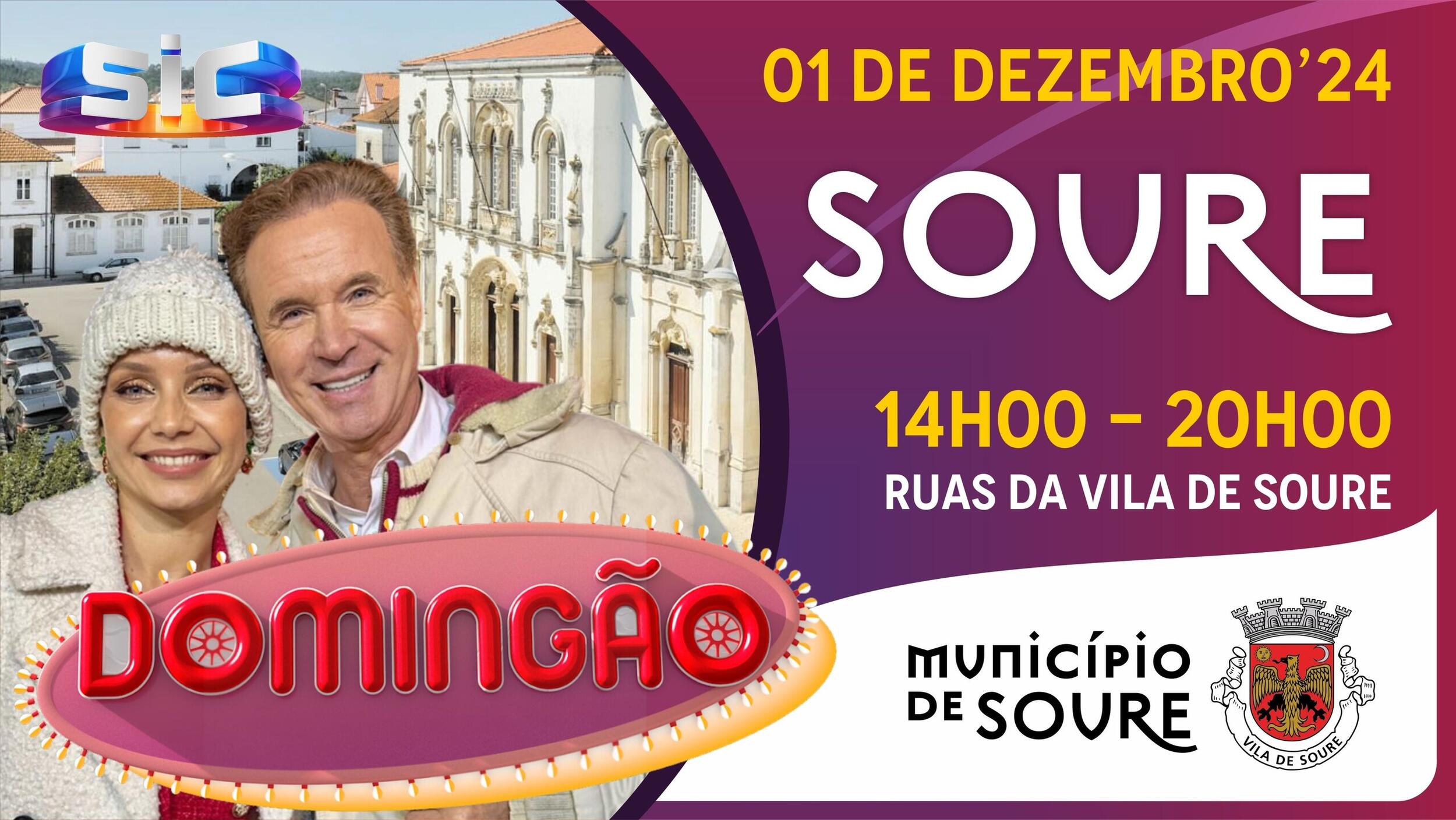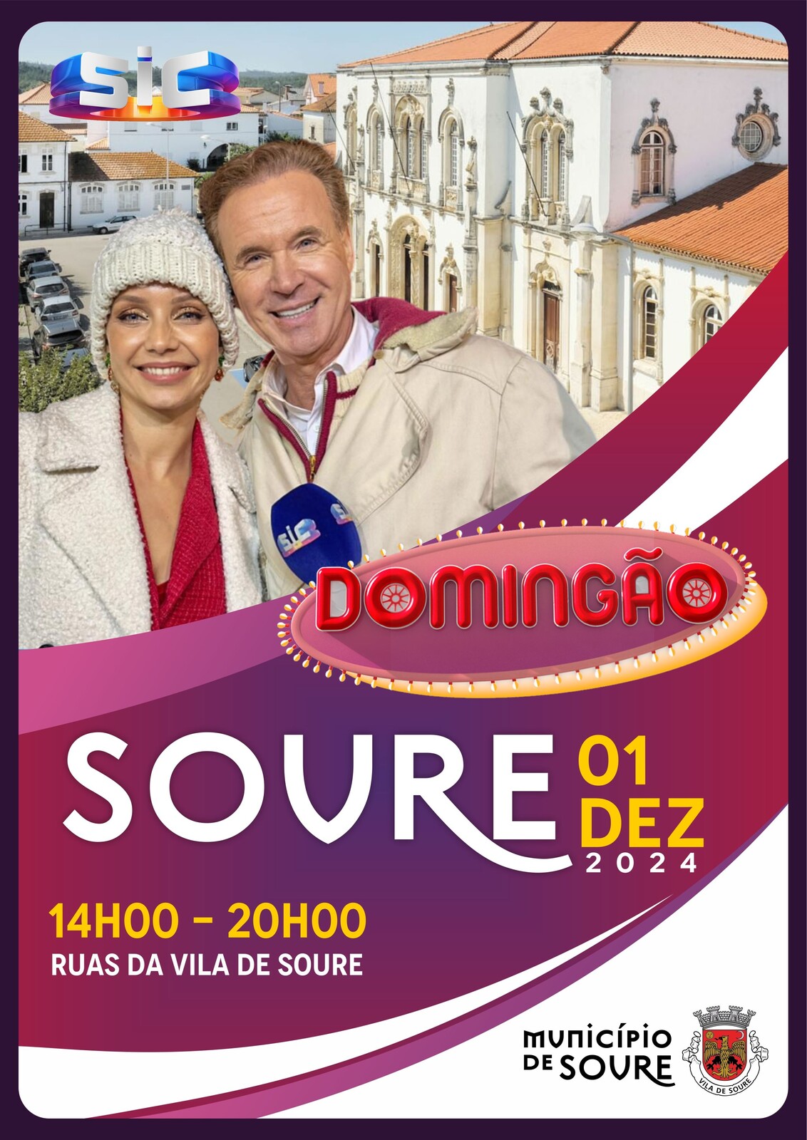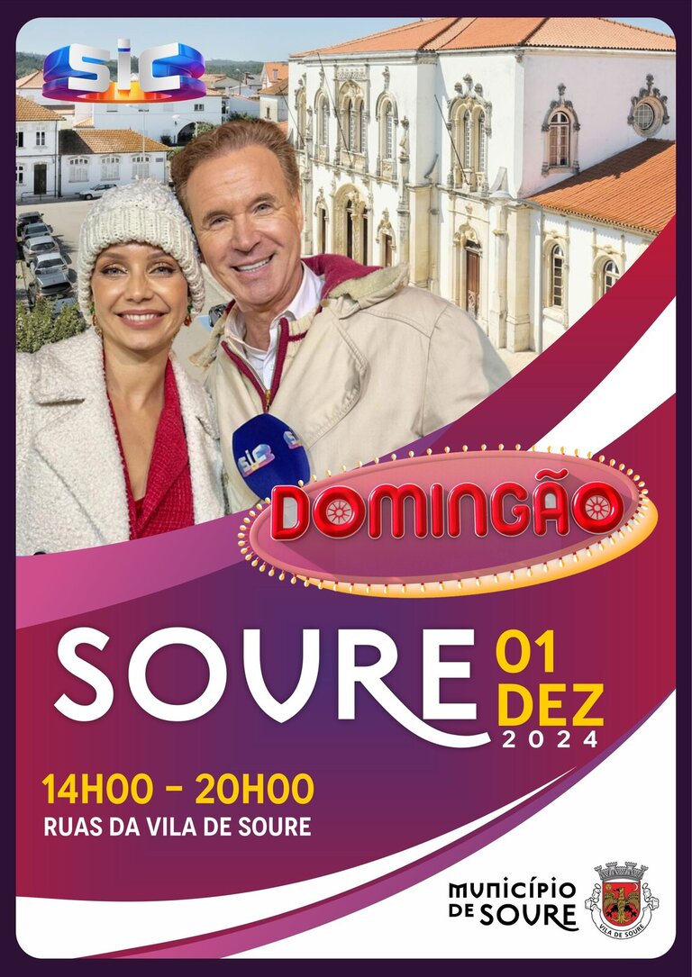 No próximo domingo, dia 1 de dezembro, o programa televisivo "Domingão", da SIC, estará em Soure, entre as 14h00 e as 20h00, onde percorrerá as principais ruas da Vila.