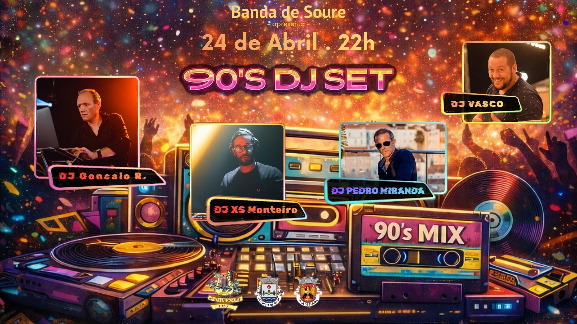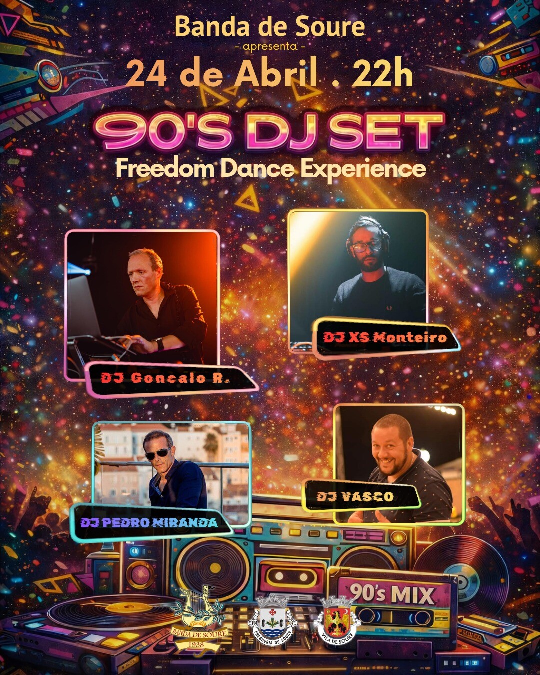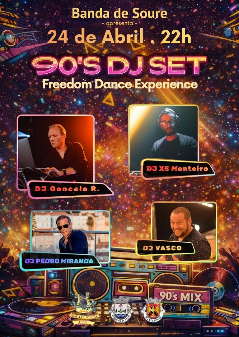 A Banda de Soure apresenta, no próximo dia 24 de abril de 2026, pelas 22h00, uma noite dedicada aos grandes êxitos dos anos 90, com o evento “90’s DJ Set – Freedom Dance Experience”.