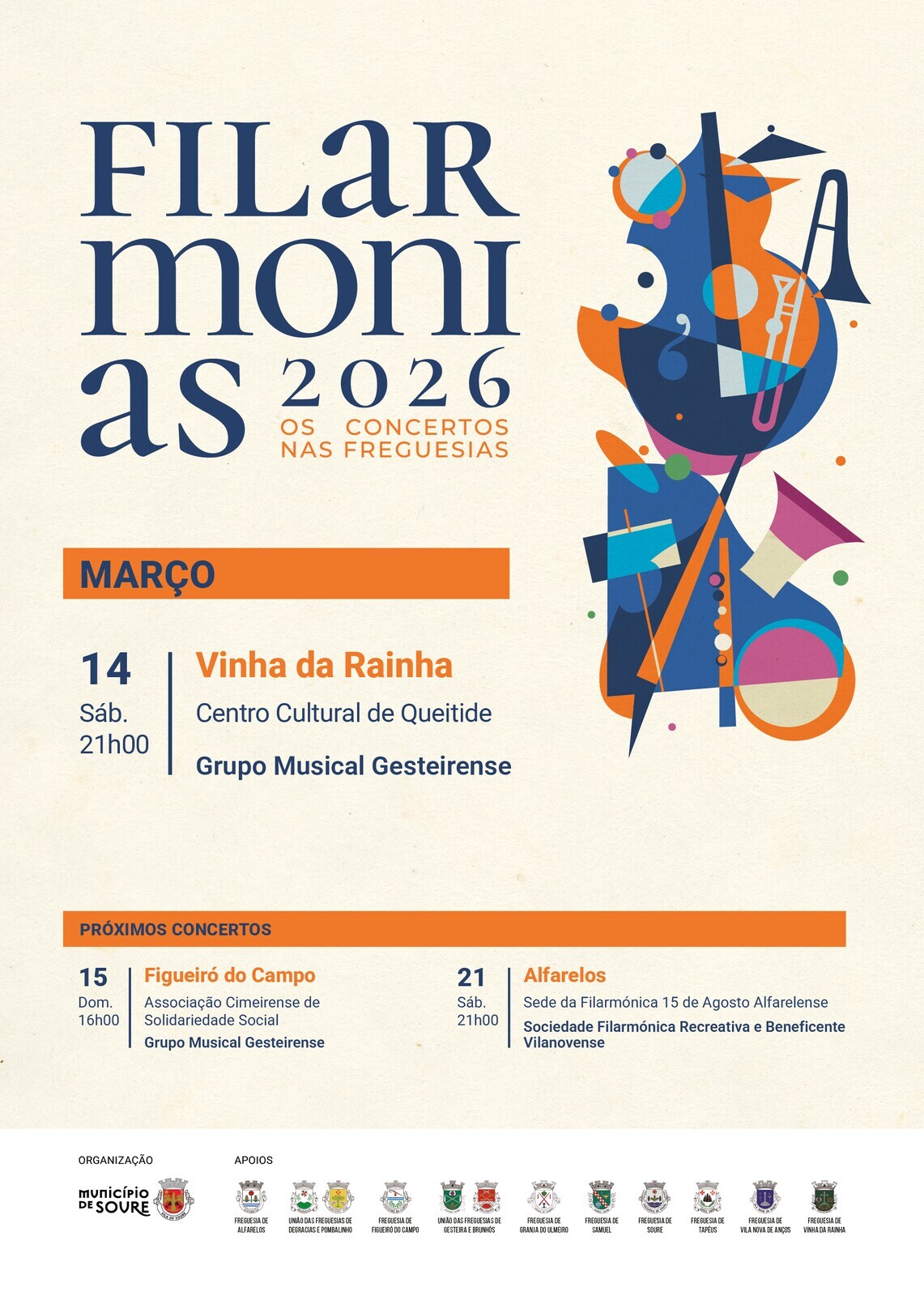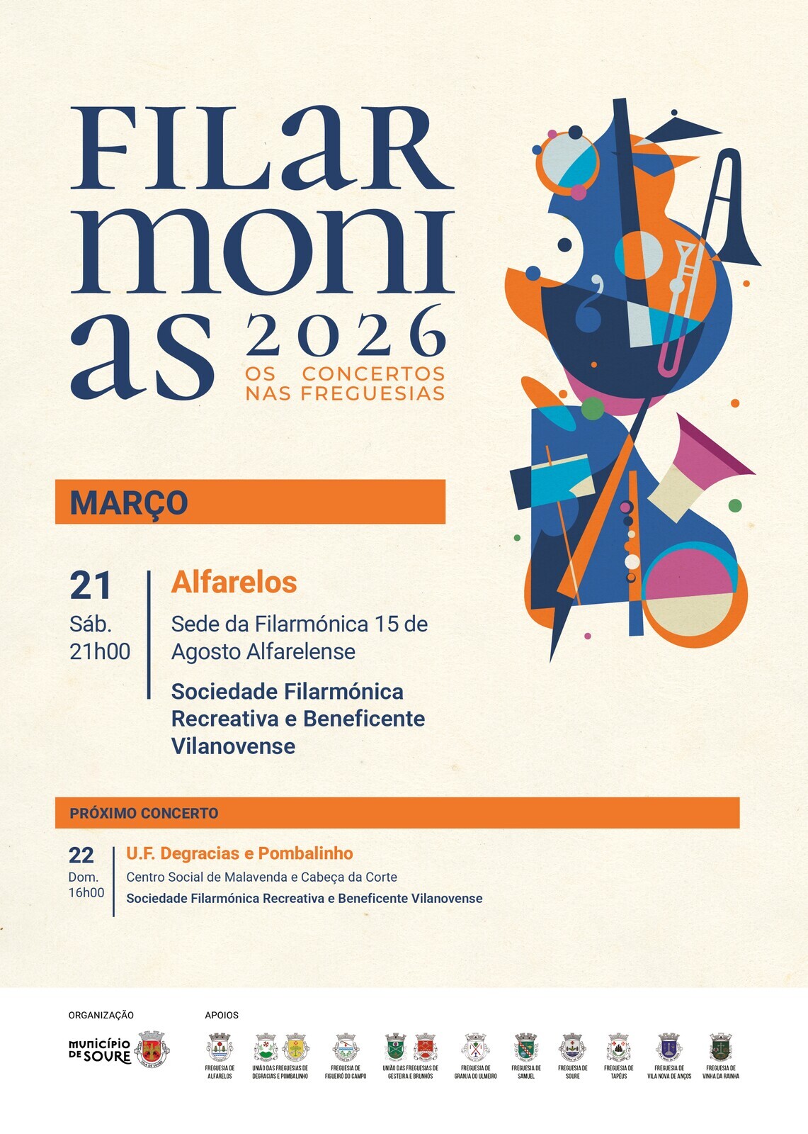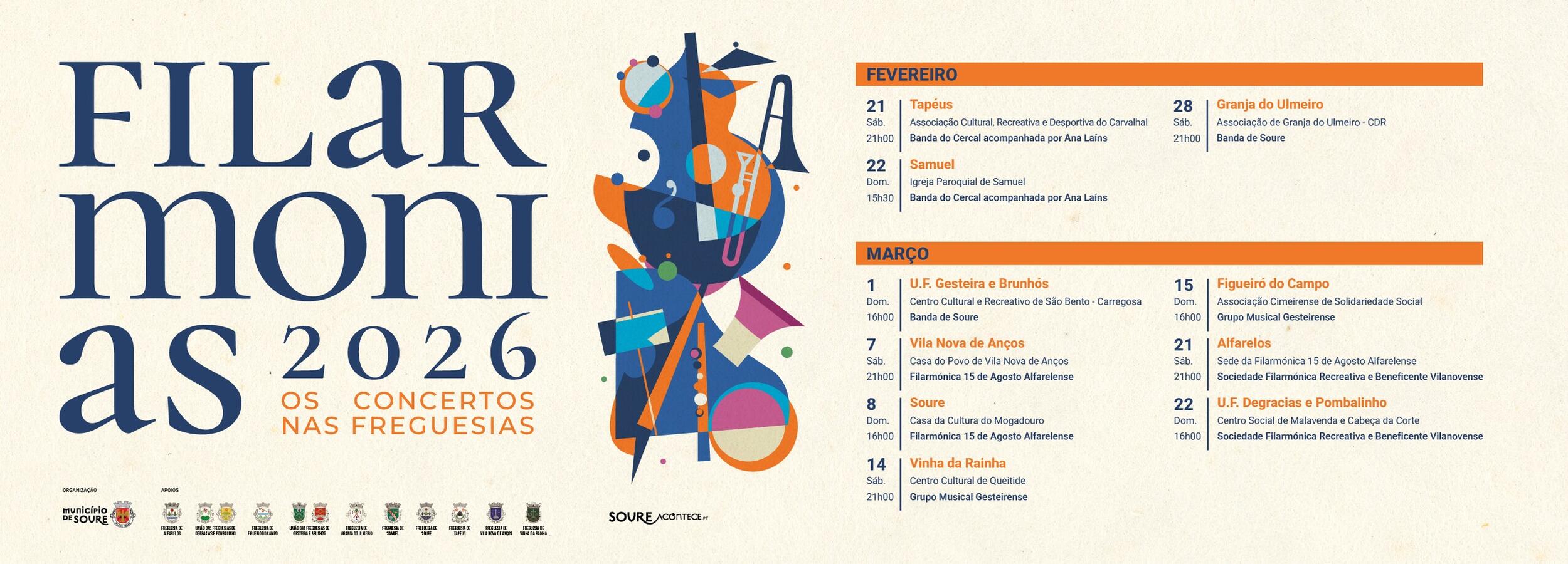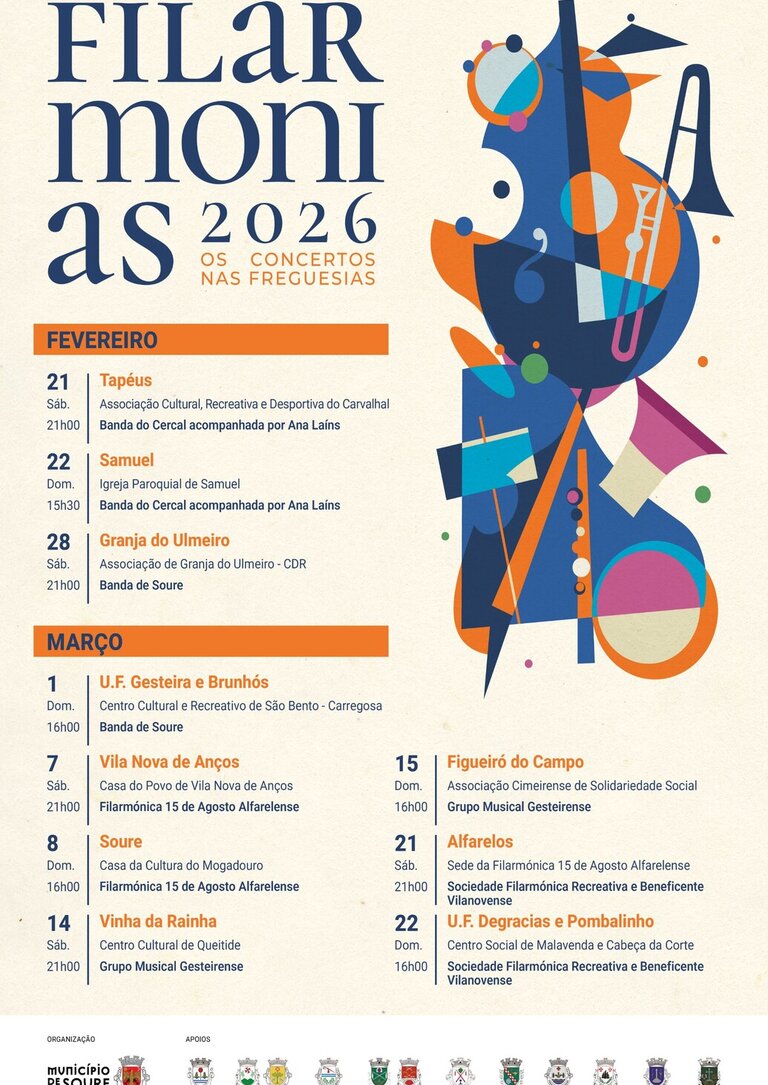 O Município de Soure volta a promover o ciclo Filarmonias, iniciativa que leva a música filarmónica às várias freguesias do concelho ao longo dos meses de fevereiro e março.