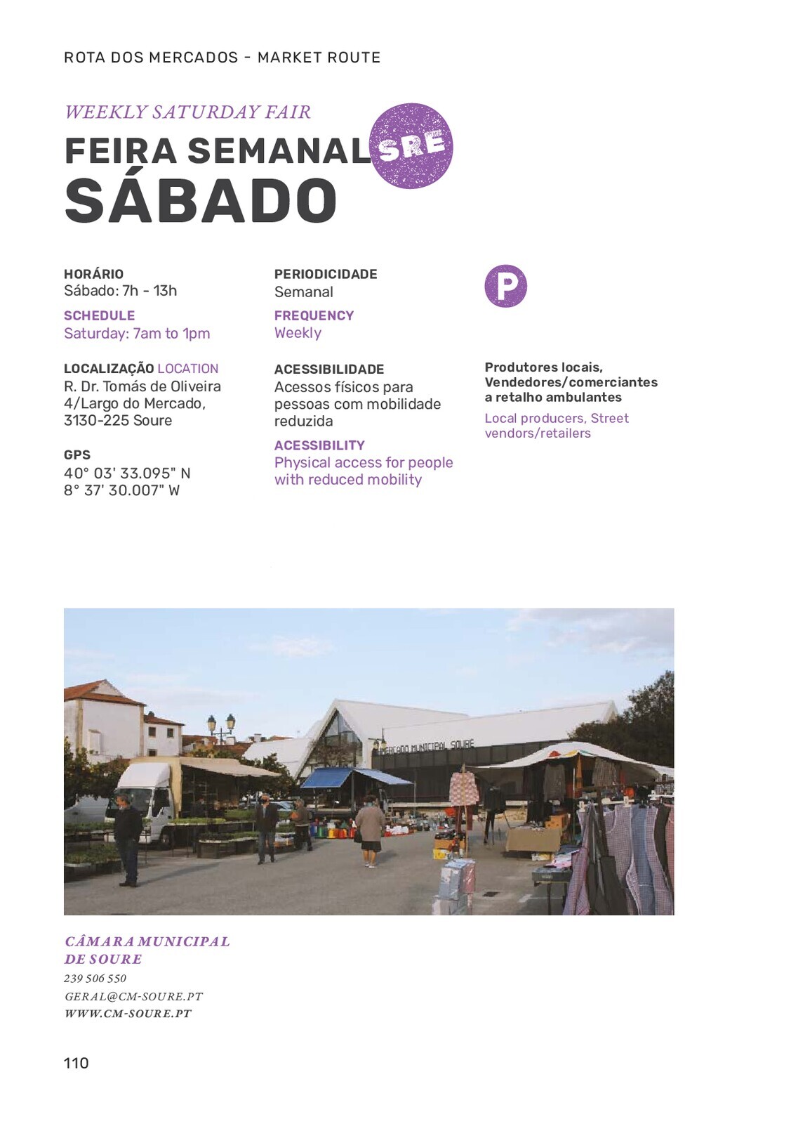 - Feira Semanal – segundas-feiras (Multiusos) e sábados (Mercado)