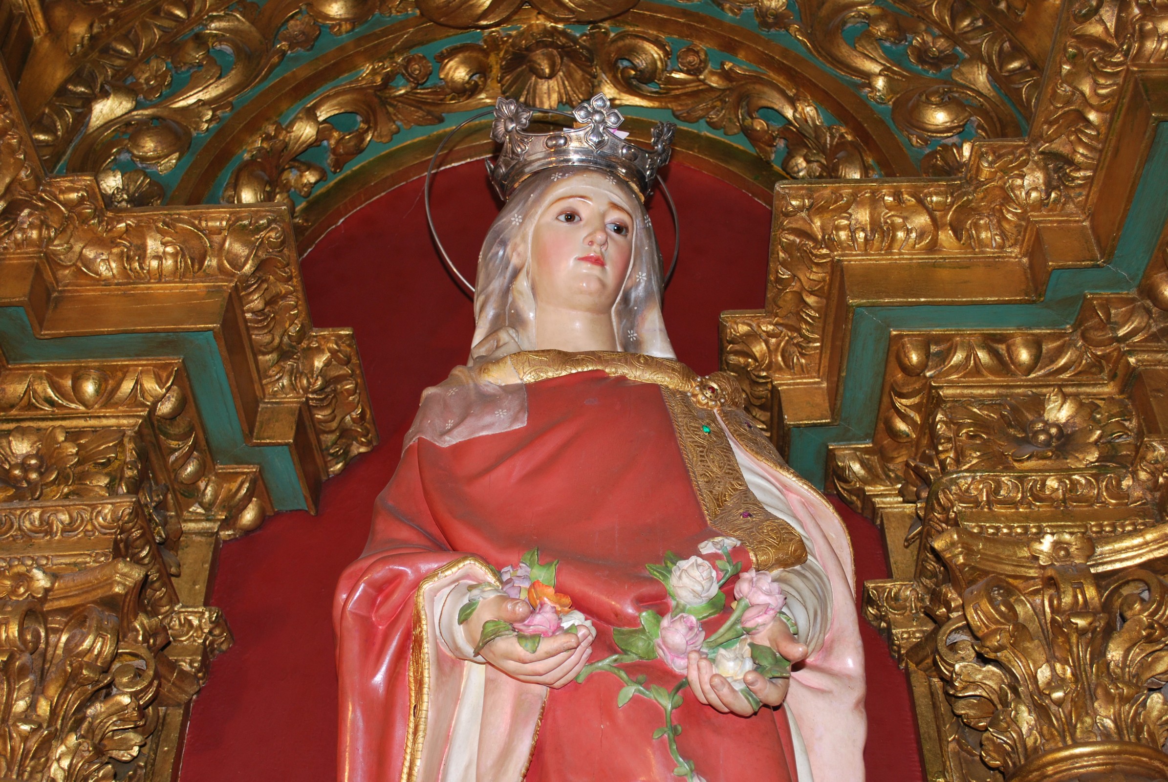 No altar, do lado direito desta capela, destaca-se a Escultura da Rainha Santa de Portugal, representando uma imagem da rainha Isabel jovem, envolta num manto traçado no ombro direito, na cabeça um véu transparente, caído sobre os ombros, simples, que lhe confere grande leveza e jovialidade. Entre as mãos presenteia-nos com rosas. Está datada de 1908 e é do escultor A. A. Estrella, da cidade do Porto, conforme atesta inscrição na base da escultura.