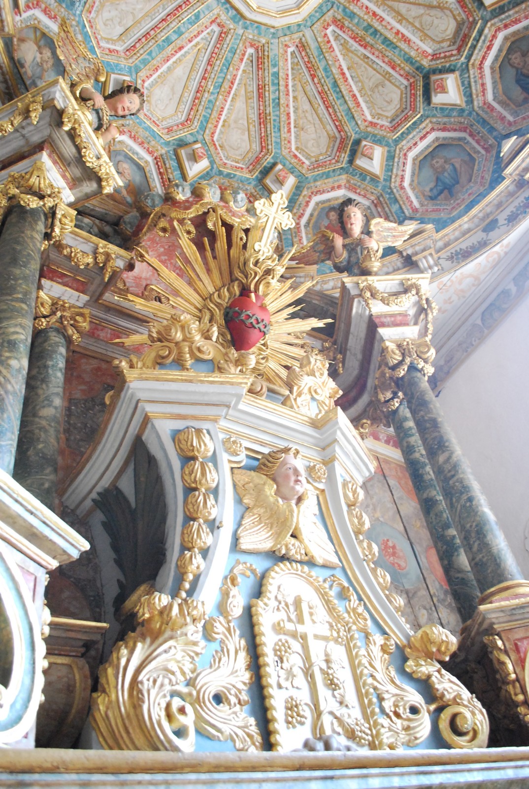 A Capela do Sacramento, datada do século XVIII, possui um altar barroco e teto em madeira, pintado, que forma uma cúpula poligonal. Ainda, nesta Capela, pode observar-se um belíssimo friso de azulejos azuis e brancos com cenas da Paixão de Cristo, barrocos, do séc. XVIII, bem como, os altares colaterais, renascentistas, com esculturas de S. Sebastião, Santo António, Santo Amaro e a bela escultura de Nossa Senhora do Rosário, acompanhada de quatro anjos, em adoração.